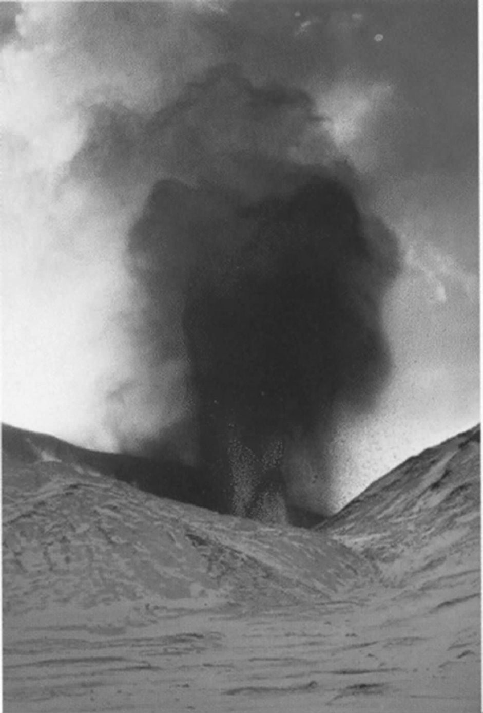 由于火山不再继续喷发,因此内部积蓄的能量越来越大。在玄武岩岩浆喷完后,从火山口喷出来的就是熔岩、凝灰岩和岩渣。它们在火山口四周留下一道道四射的痕迹,看上去仿佛浓密的长发。