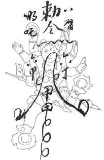 金木笔记中,根据当时记忆绘制的灵符图案,红色线条就是八臂哪吒