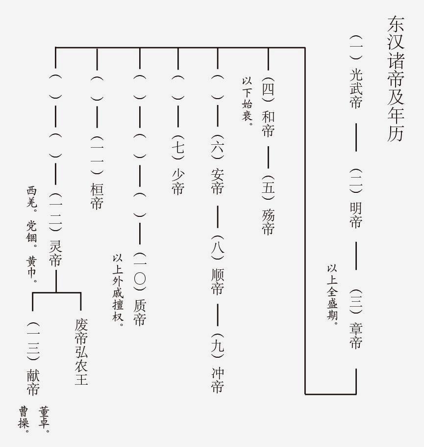 因东汉诸帝多童年即位、夭折,及绝嗣,【绝嗣外立,多择童年。】遂多母后临朝,【外立者四帝:安、质、桓、灵,临朝者六后:窦、邓、阎、梁、窦、何。】而外戚、宦官藉之用事。
