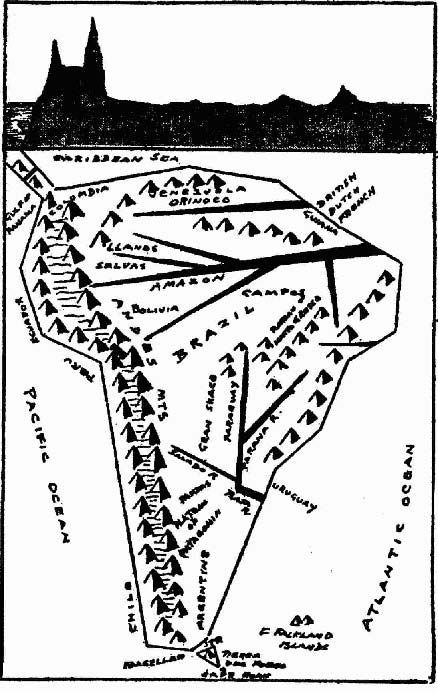 位于南美的安第斯山脉,和在北美境内的姊妹山脉还有其他两点相似之处:延绵的山脉环抱着宽阔的高原,并形成国家之间的天然屏障;另外,山势险峻,没有便利的通道。所以,唯一的一条横穿安第斯山脉的铁路,也就是智利—阿根廷铁路,不得不依山势爬行,其攀登的高度远远超过瑞士的圣伯纳得山口和哥达山口。