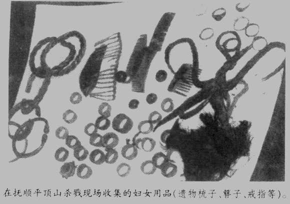 “……这时,八路军不在村子里,己开往别的地方。白天,我们可以听见从村里传来的抢劫和村里人的喊叫声,从地窖里还可以看到村子被烧的浓烟。到了晚上9时左右,村里终于平静下来,日军好像巳经撤走。我们回到村里去看情况,那时我们家和附近的房屋还在燃烧。来不及逃走的人们的尸体,横在路上、家门口或家中,到处都是。