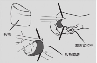 “扳指”是拉弓射箭时扣弦用的一种工具,套在射手的右手拇指上,其作用是可以减小压强,以保护射手右拇指在拉弓时不被弓弦勒伤